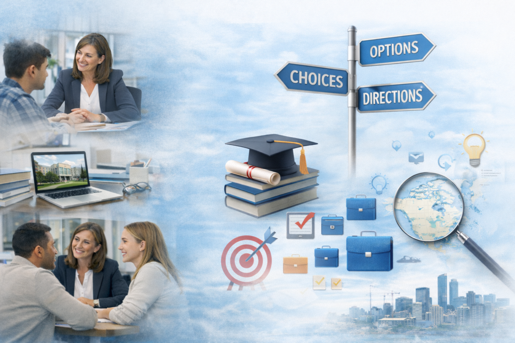 Chez CanEdu Bridge, nous vous accompagnons dans la construction d’un projet d’études solide, réaliste et adapté au contexte canadien, afin de maximiser ses chances de réussite.